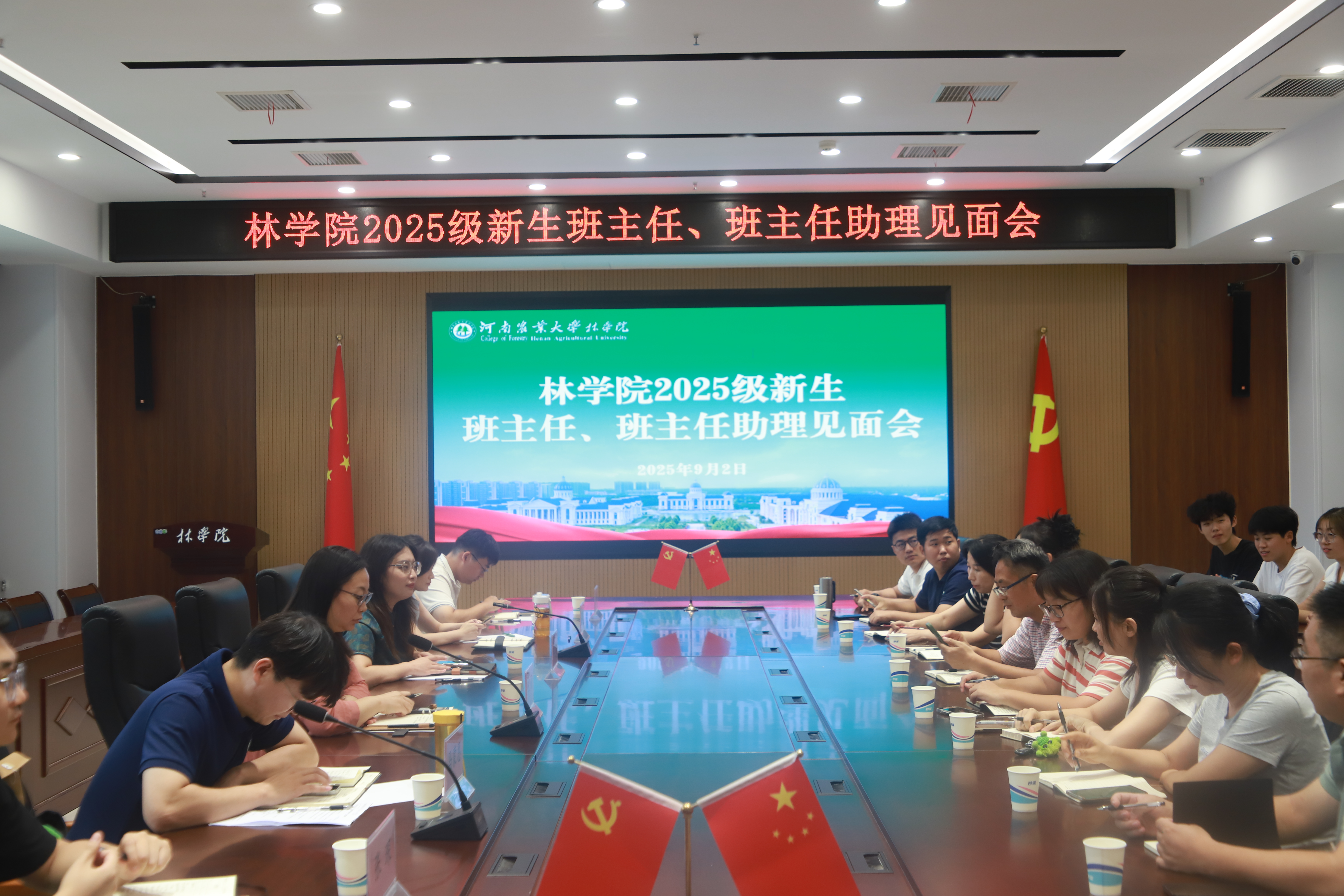 于龙子湖校区力行楼南231会议室召开2025级新生班主任及班主任助理见面会。院党委副书记王娟、院团委书记田原及院团委老师出席本次会议,2025级全体新生班主任与班主任助理参加会议。会议由田原主持。