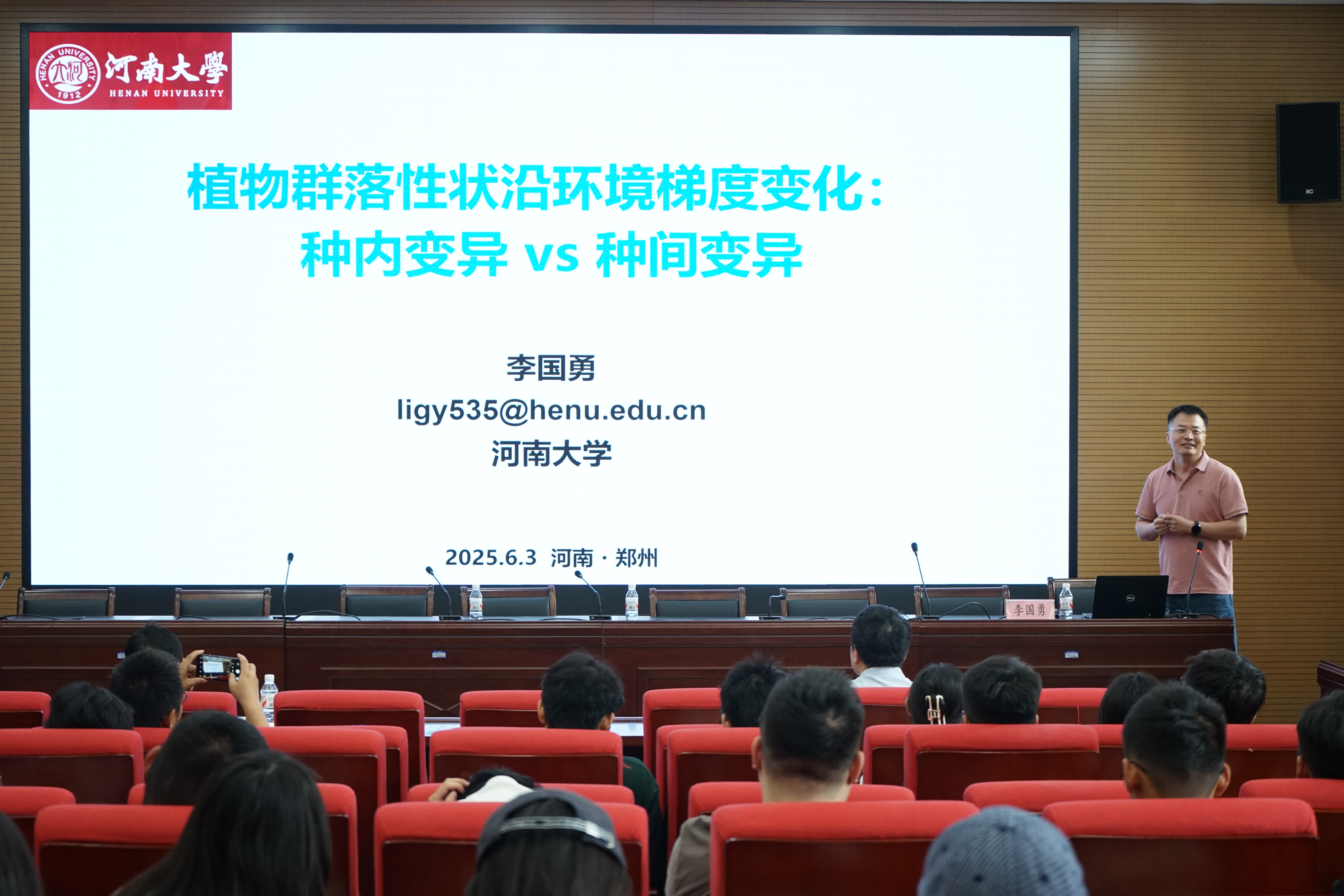 李国勇以《植物群落性状沿环境梯度变化:种内变异vs种间变异》为题,围绕植物群落性状对环境变化的响应规律,阐释了种内变异与种间变异的相对作用等科学问题。报告介绍了该领域的最新研究进展和发现,提出了在不同环境梯度下,群落性状从种内变异主导转向种间变异主导的动态响应过程。
