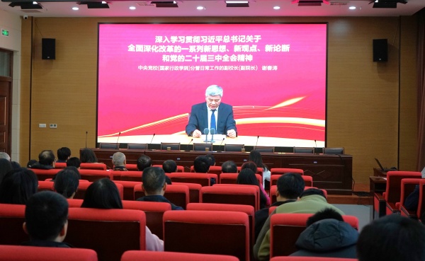 下阶段学习工作进行了安排部署。随后,全体教职工共同观看了由中央党校副校长谢春涛教授的宣讲视频,深入学习了习近平总书记关于全面深化改革的一系列新思想、新观点、新论断和党的二十届三中全会精神。