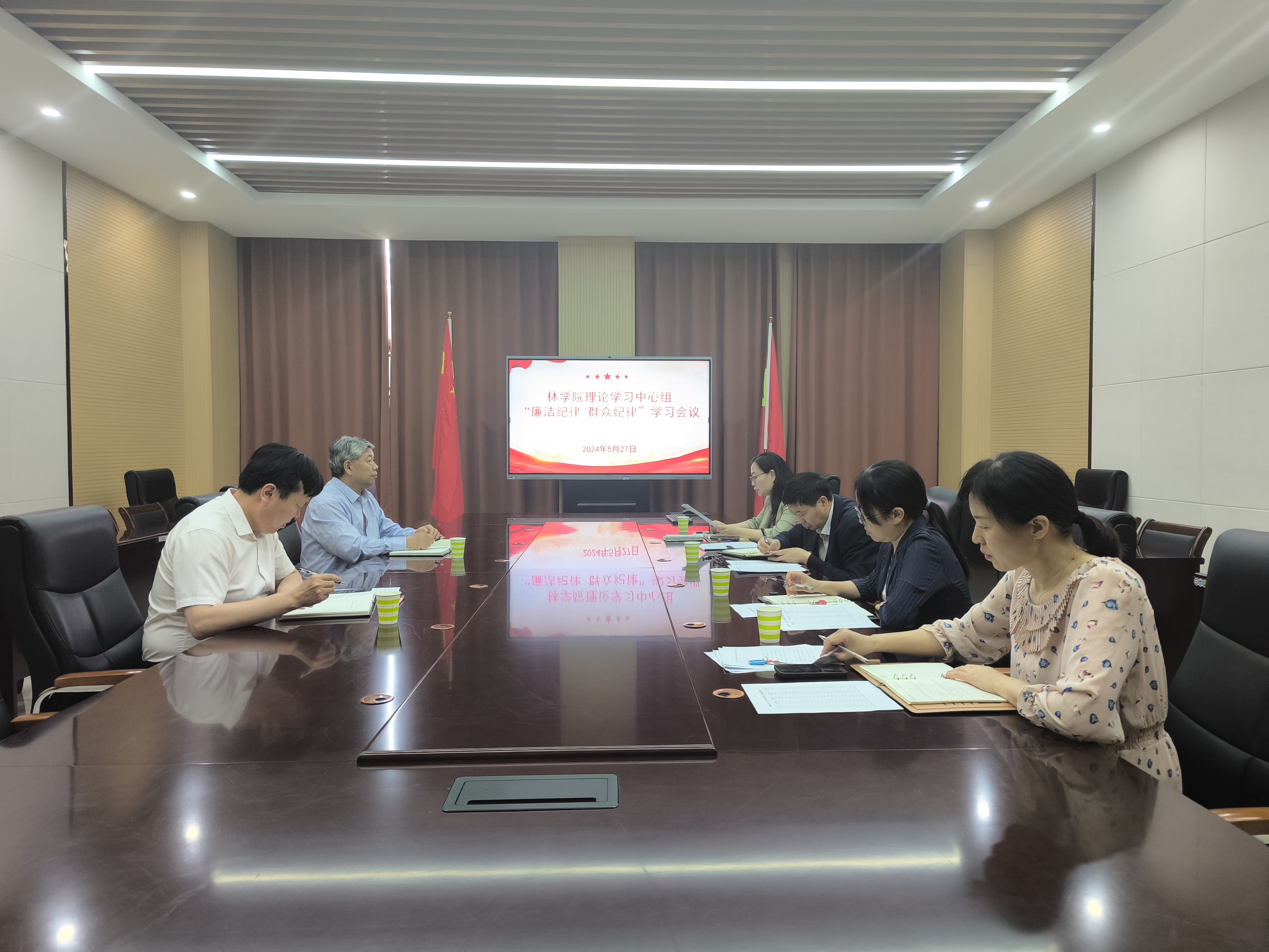 5月27日上午,院党委理论学习中心组在力行楼南244会议室举行党纪学习教育第二次集中学习。围绕“廉洁纪律,群众纪律”建设开展学习和交流研讨。会议由院党委书记化青报主持,院党委委员参加会议。