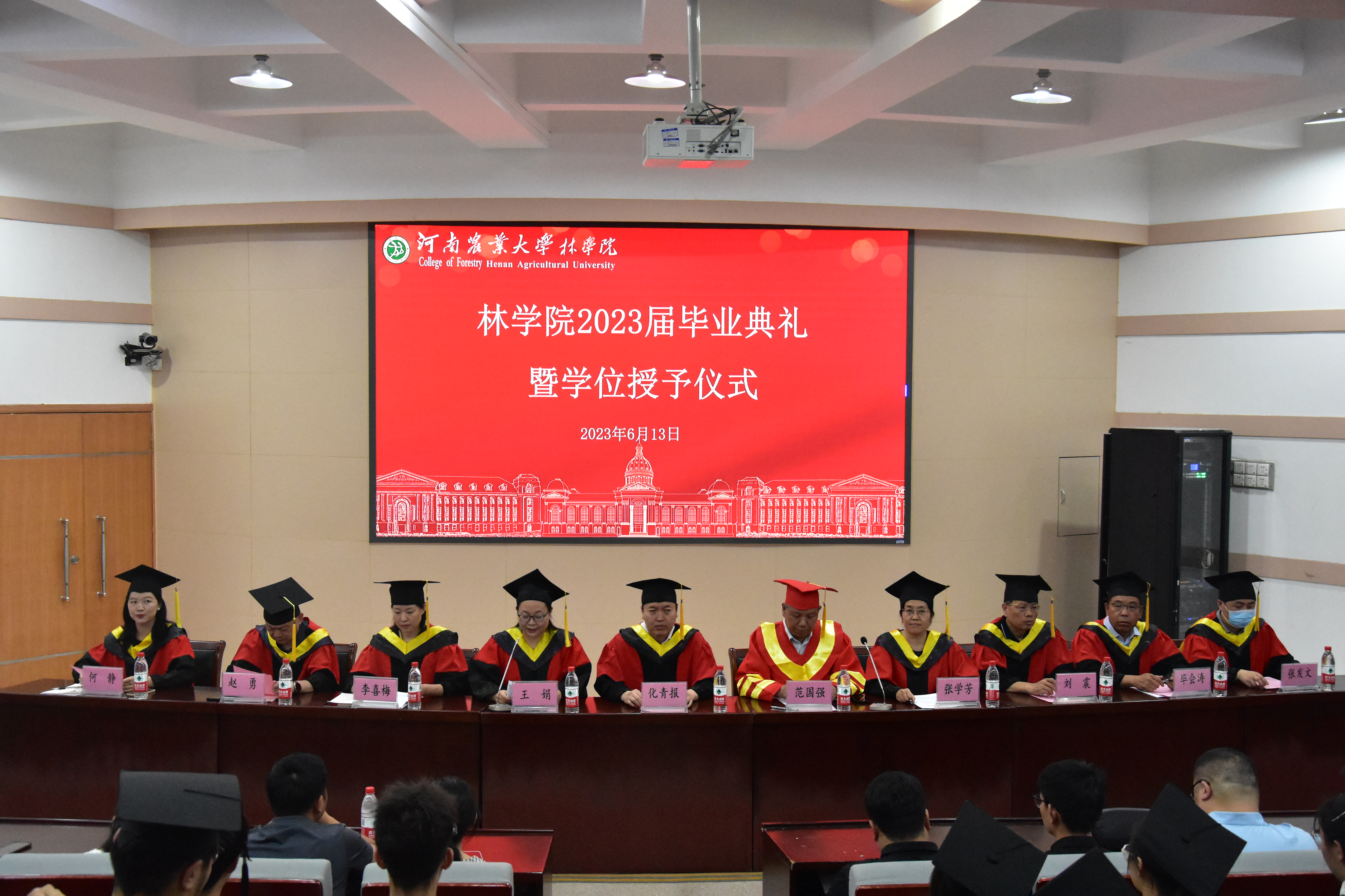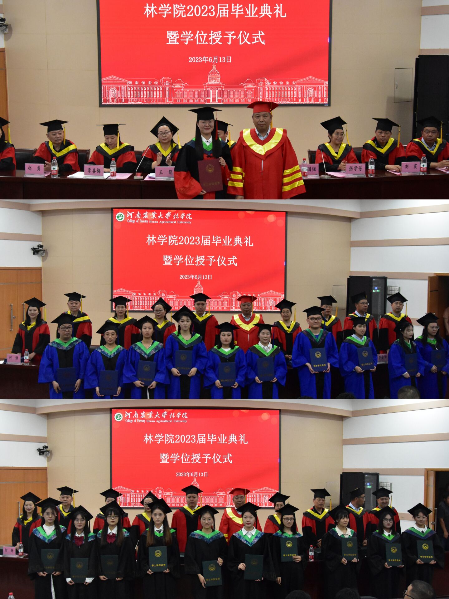 院长范国强教授发表重要讲话,他首先对圆满完成学业的全体毕业生表示热烈祝贺和衷心的祝福,他回忆了毕业生们的成长故事,强调厚植爱农情怀,练就兴农本领,用拼搏和奋斗践行“团结勤奋 严谨求实”的林院精神,他对即将离校的毕业生寄语三句话:一是希望大家心怀梦想、志存高远,历尽千帆,仍有少年凌云志;二是希望大家冲锋在前、无惧风浪,在乡村振兴的大舞台上建功立业;三是希望大家顺境不骄,逆境不馁,始终坚定百折不挠的进取意志和乐观向上的精神态度。
