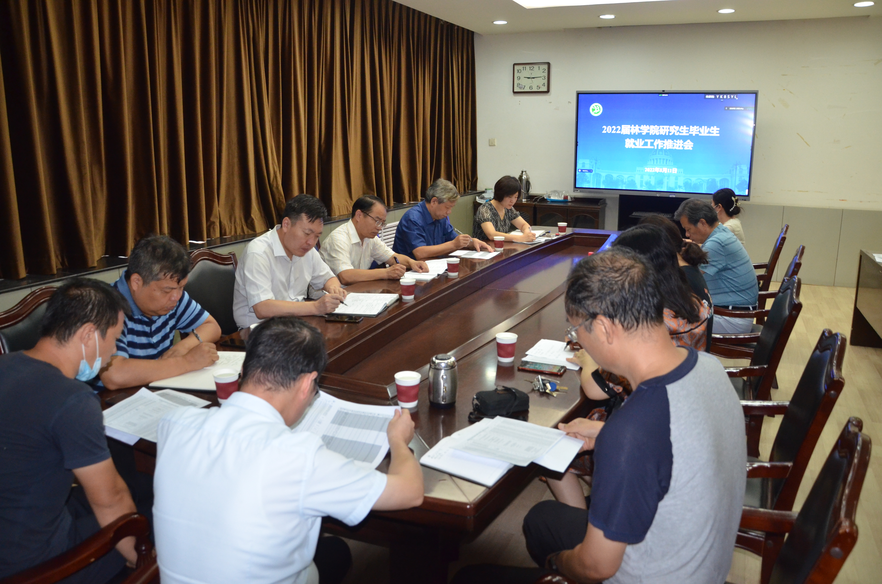 2022届研究生就业进展情况、就业政策及就业过程中出现的问题进行了介绍。刘震介绍了林业专硕学生的就业特点、面临的问题和下一步促进林业专硕学生就业的打算。刘方明讲解了签约解约、派遣报到、档案转递等就业流程手续。参会导师就做好研究生就业工作进行了交流。