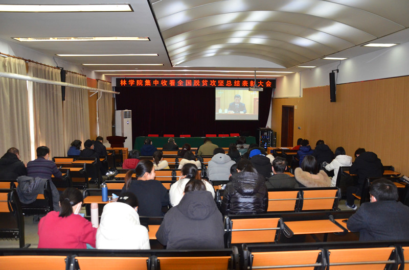 全体教职工在二号楼四楼学术报告厅集中收看全国脱贫攻坚总结表彰大会。