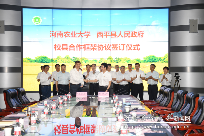 与西平县人民政府校地合作框架协议签订仪式在中原农村信息港一楼大厅举行。西平县委书记聂晓光,县长李全喜,县委副书记,县委常委组织部长,县委常委宣传部长、副县长、县政协副主席,以及县农业农村局、自然资源局、城市管理局、林业发展服务中心等有关部门负责人,极速快三平台