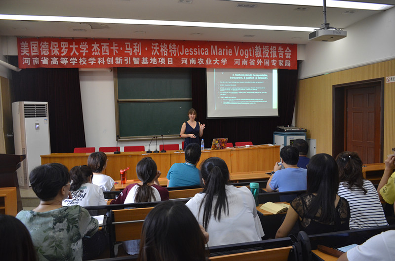 田国行教授邀请,河南省“城乡绿地资源调控与景观生态设计”学科创新引智基地合作专家、美国德保罗大学杰西卡·马利·沃格特(Jessica Marie Vogt)教授莅临极速快三平台