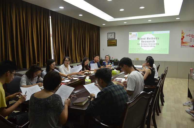 师生作了题为“Transdisciplinary Urban Forestryfor the Anthropocene”(面向人类的城市林业跨学科融合)的学术报告。该报告以多学科理论、方法、技术、手段的融合为途径,保证城市森林资源建设的可持续发展,以解决当下人类发展过程中面临的主要问题。