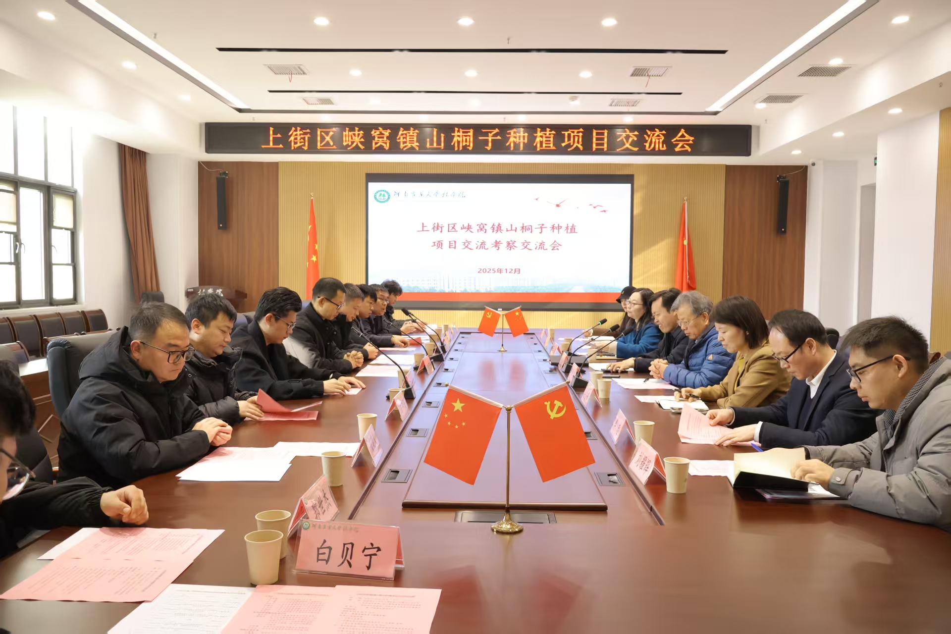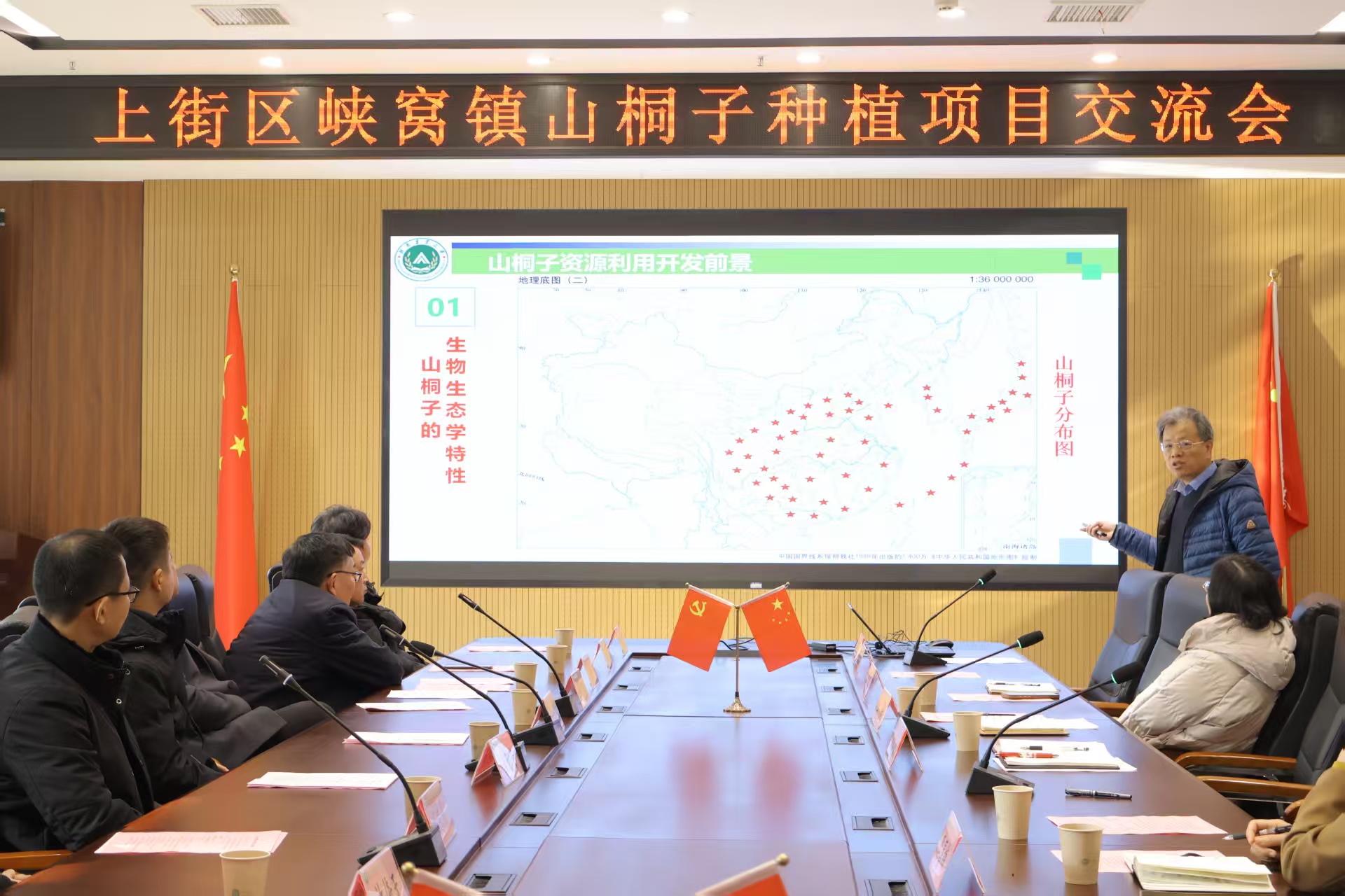 在学科建设、师资队伍、人才培养、科学研究等方面的发展情况。吕渊介绍了当地山桐子种植产业规划并提出发展需求;刘震作专题分享,详细介绍了山桐子产业开发利用前景,其“树上油库”的高产量、高品质特性及生态经济双重价值引发与会人员广泛关注。随后,双方就种植技术推广、产业链延伸、政策扶持落地等问题展开互动交流,现场氛围热烈。