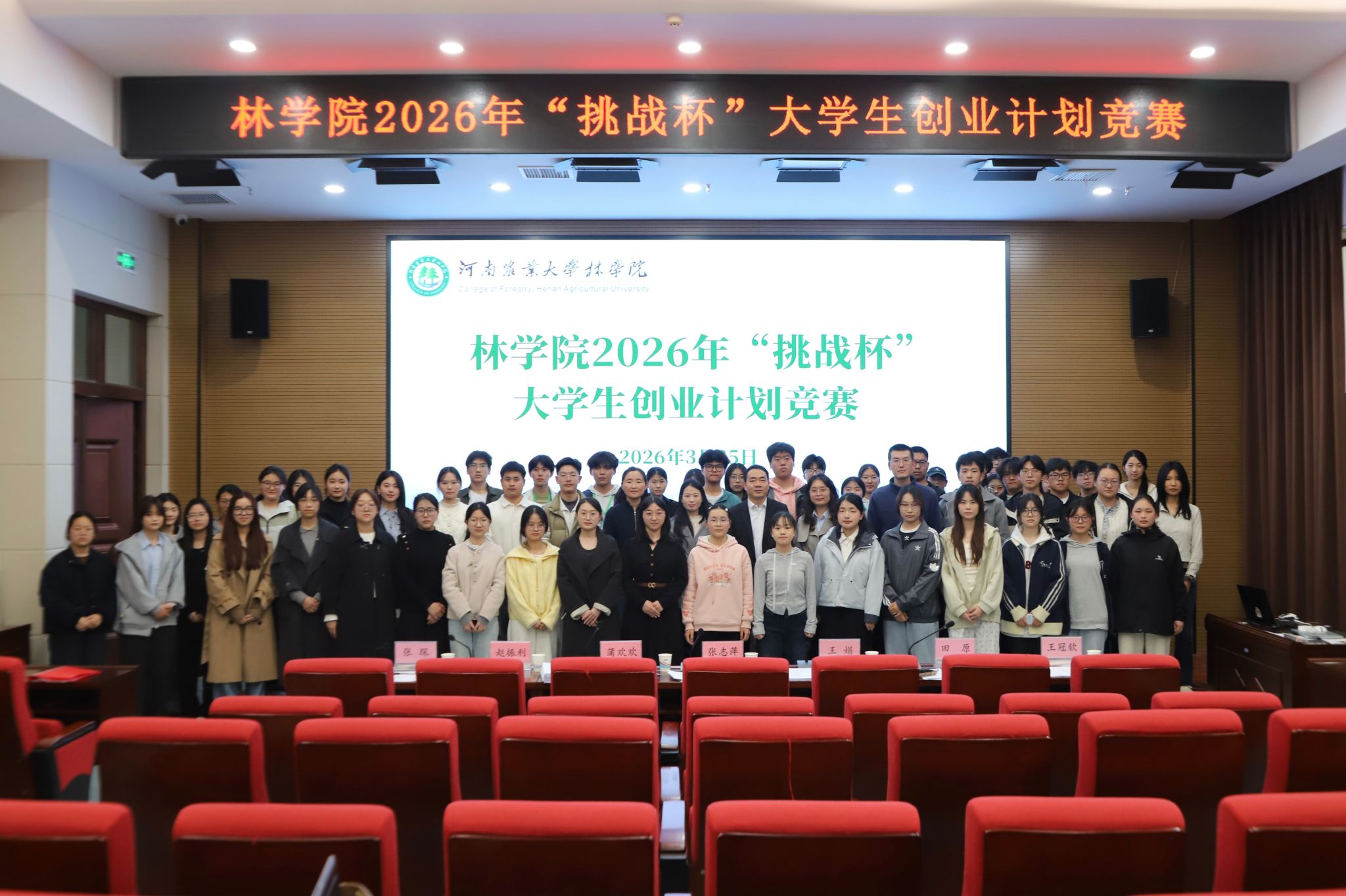 于龙子湖校区力行楼南428报告厅举办2026年“挑战杯”大学生创业计划竞赛。教育部青年长江学者张志萍,中国青年创业导师蒲欢欢,院党委副书记王娟,副院长赵振利,院团委书记田原,副书记张琛,院团委老师王冠钦参加本次活动。