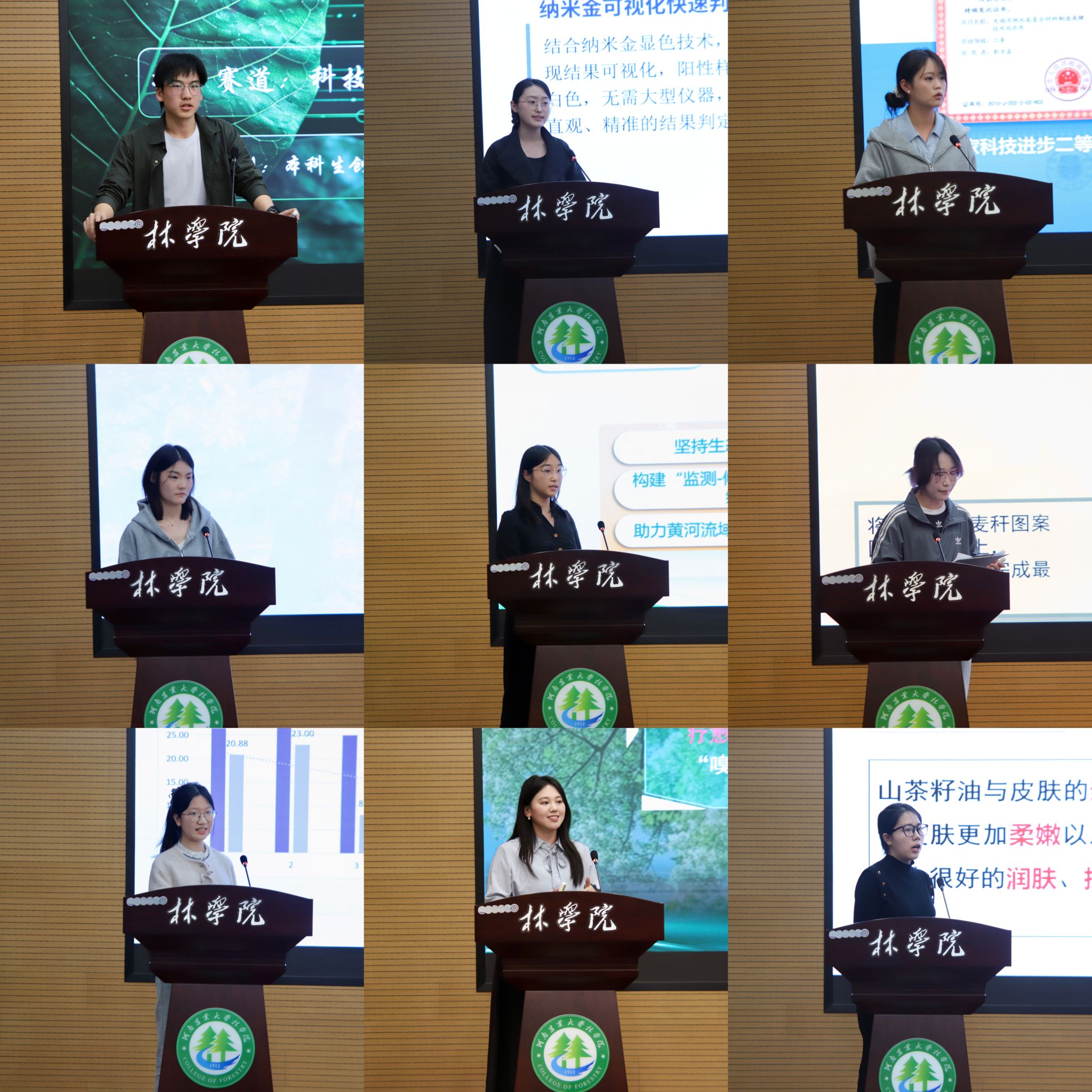 比赛现场,14个参赛团队依次登台汇报。各团队围绕林木资源协同科普、泡桐高值化利用、植原体快检技术等方向,展示项目研究成果,阐述其实际应用与推广价值。评委团队立足专业视角与产业需求,与参赛学生展开深入交流探讨,精准点评作品,提出优化建议,为各团队后续打磨作品、提升项目竞争力指明方向。