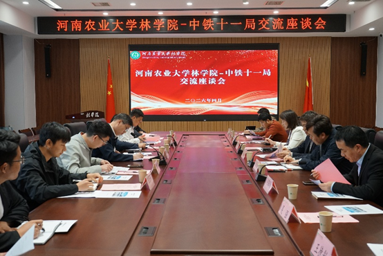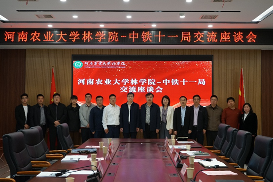 农业经济系主任吴强、林学系主任闫东锋等相关人员及中铁十一局集团建筑安装工程有限公司副总经理李希恒、新质生产力中心主任黄言初、副主任付弘灏、副主任王乐彬、河南市场总经理董华坤、河南区域经理雷金伟共同出席本次交流活动。座谈会由李喜梅主持。